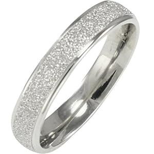 A shiny simple stainless steel band ring with shimmer stardust all around. This sparkling ring is 3.8mm wide and available from size 5 to 8. We use high quality stainless steel which has high resistance to rust, corrosion and tarnishing and requires minimal maintenance in order to keep jewelry looking like new. You can get the matching men's ring to make this a couples ring set for your love ones (Product number 508506.9935M).